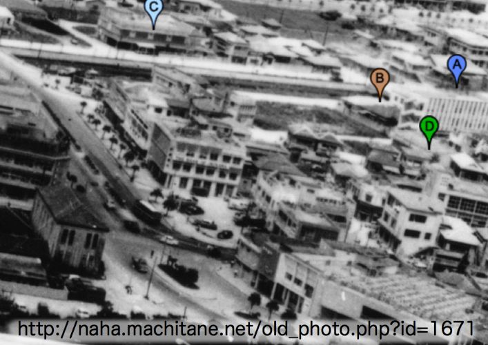 琉球セメントは宮城仁四郎の会社で大東糖業もそうです。そしてグーグルマップで見るAは大東ビル、Bは日高ビルとなっていて、おそらく当時からA、Bともにオーナーは変わっていません。