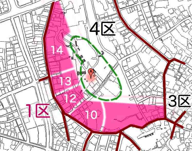 ゼンリン地図69年版での角部分。