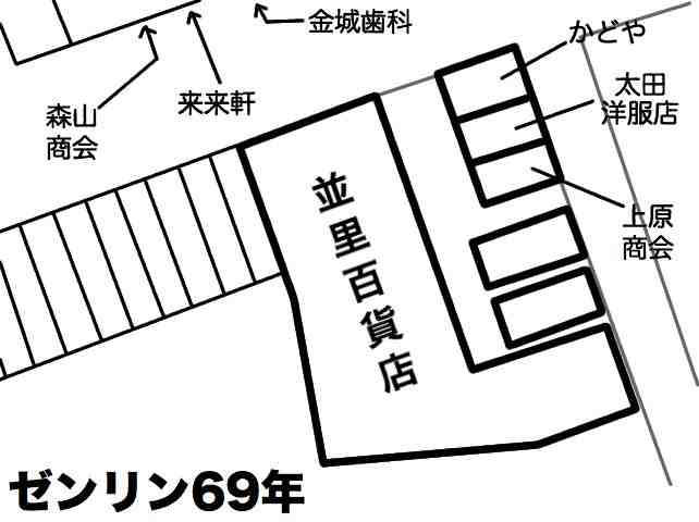 •なみざと(なみさと)百貨店/いづみ(いずみ)写真館の間に「喫茶いずみ」