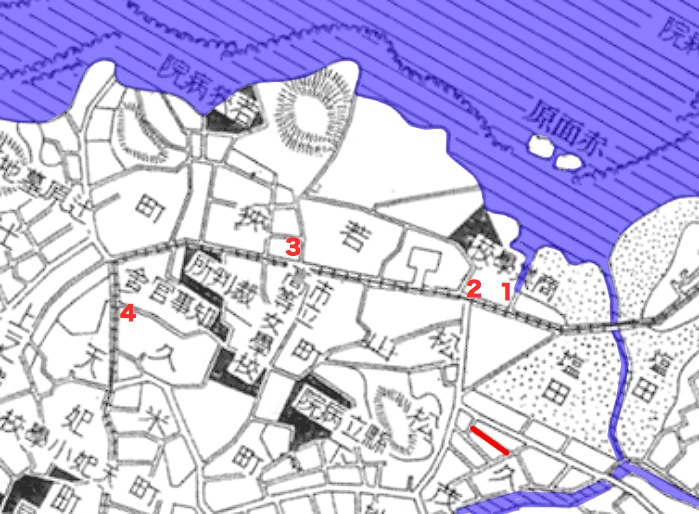 図中で若狭の潟原側にある