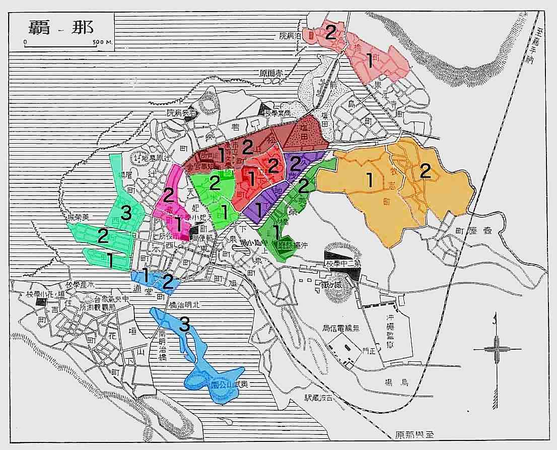 沖縄實業と文化人名録 p129我那覇さんの身内が多いようですね。5区17組は崇元寺から橋に向かって渡る手前の左側と橋を渡った左側です。