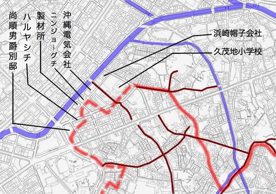 原の位置は真和志民俗地図、鉄道駅の位置は「酔古ざつがく」さまを参考にしています。