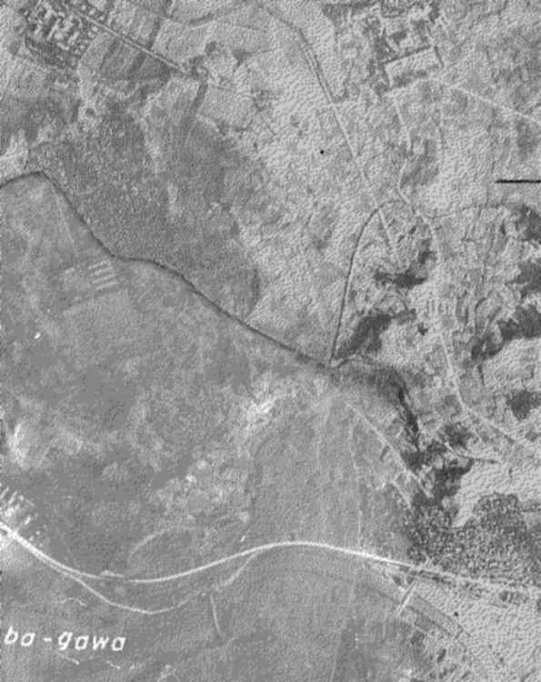 また写真右上にある道は国場から寄宮へ行く道で平行するように与儀射撃場が見えます。