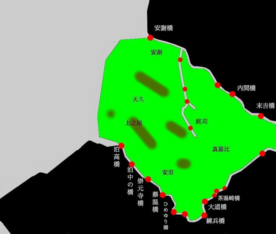 真和志民俗地図を見ると古波蔵駅から向こう側の国場川沿岸に細長く集落があり、反対側には台南清酒工場という表示があります。写真でくっきり見えるのは道路でそことほぼ平行してあるのが線路です(クリックして拡大しないと見えません)。