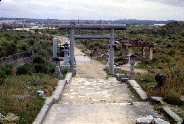 場所を推定すると一枚目が2の鳥居から波上宮境内の1の鳥居を望む位置、二枚目が1の鳥居の足元から2の鳥居を望む位置(遠くに3の鳥居も見える)、三枚目が3の鳥居から波上宮を望む位置ってとこでしょうか。