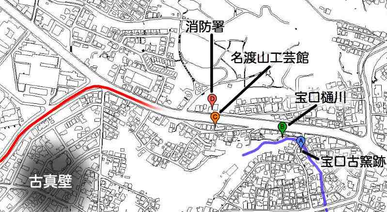 堂小屋敷は久米村の中に水色で示した水路の右上辺りの一帯のようです。そばに東寿寺(堂小)という寺があります。