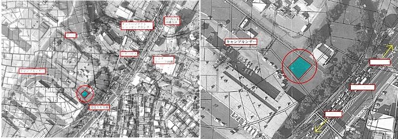 このことは右側の民間地の道路も土地接収以前の道筋に従っていることも示しています。