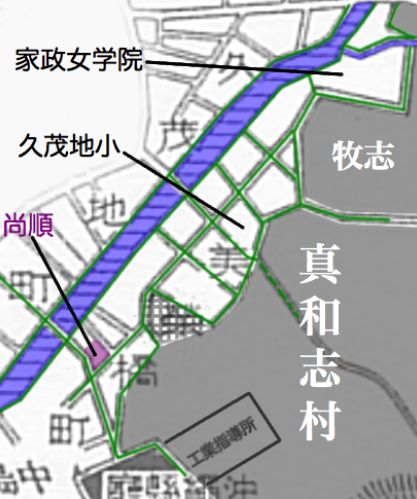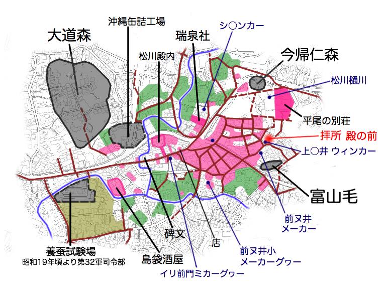 なきじん研究15号 p212 (抜粋と編集)掲載された「平敷村略図」と現在の小字図の違いはかなり大きいです。