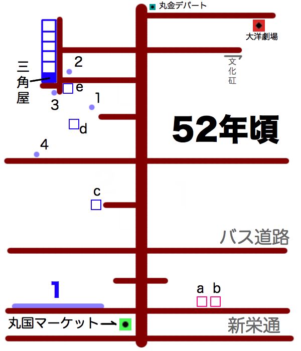 大洋劇場後方あたりが50年代当時どうなっていたのかがさっぱりわからないまま作業をします...