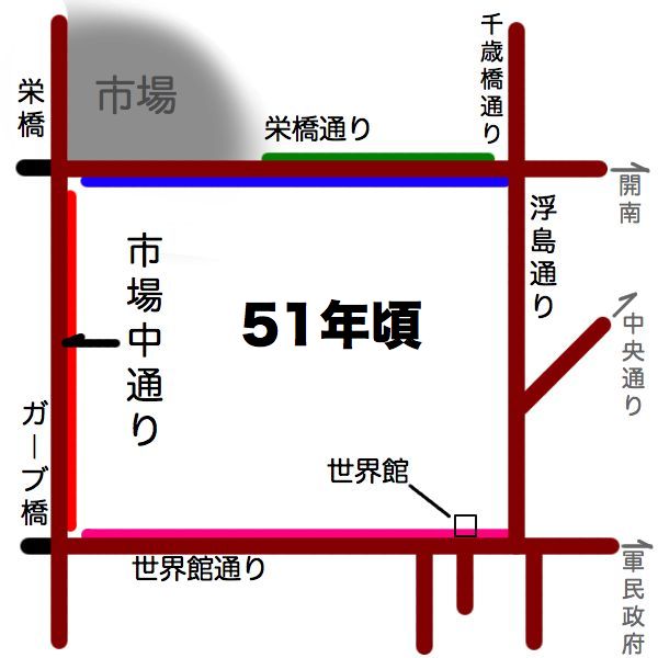 沖縄主要地主要商工年鑑(52年版)を参考にすると浮島・千歳通りはこんな感じ。