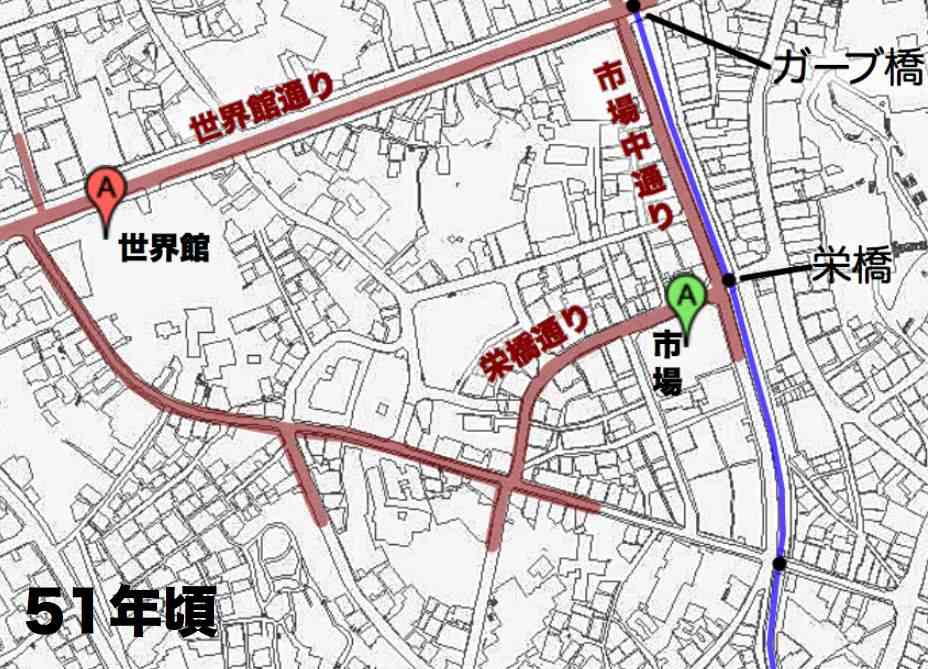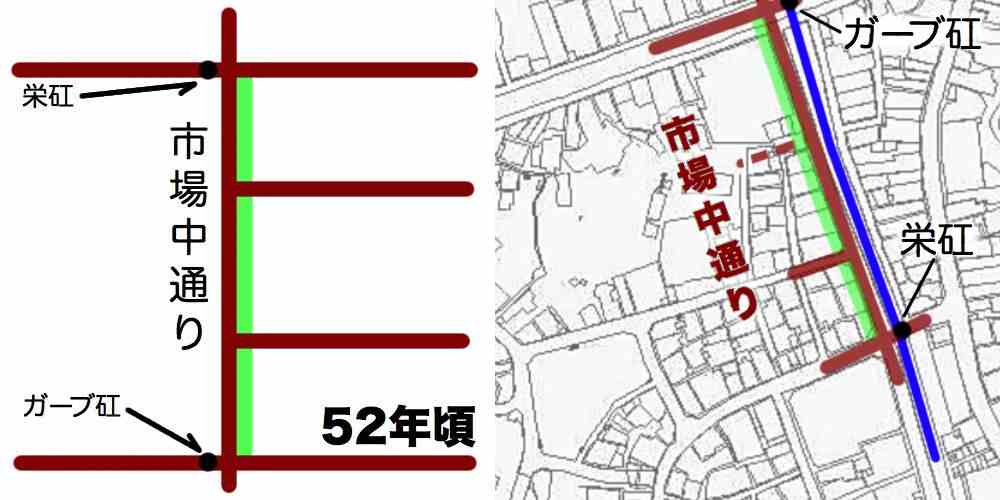 現在は丸国マーケットから国際通りまでの区間を浮島通りと呼んでいる(?)人もいるみたいですが50年代の地図では違っています。