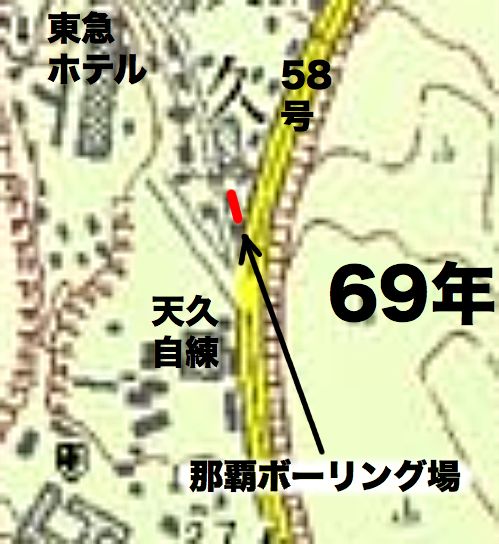 そうすると「沖縄主要地・主要商工年鑑」の51、52年の両方ともに中央の道の奥に美容院(美粧院)がありその角に十字屋楽器店があったことになります。この道の位置は現在のえびす通りとはあきらかに違います。
