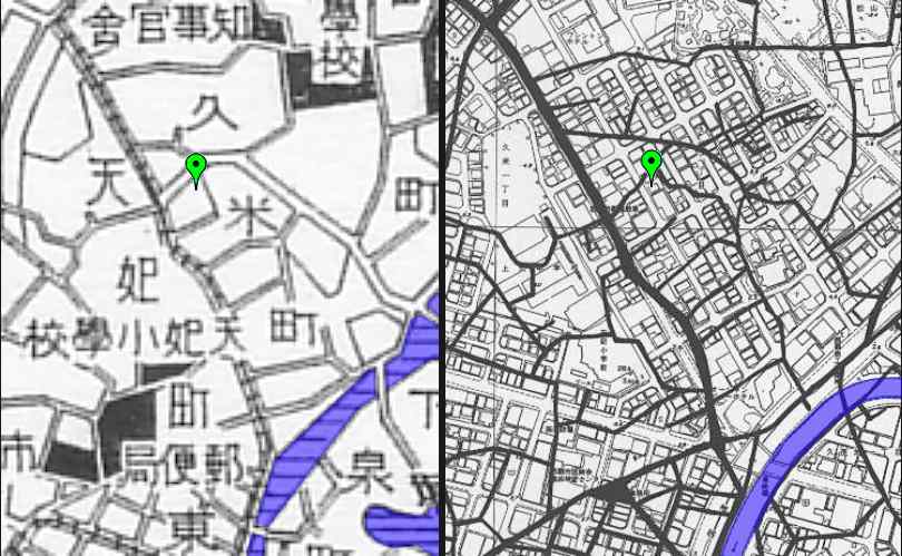 まず戦前は久米にありました。善隣幼稚園もこの位置です。